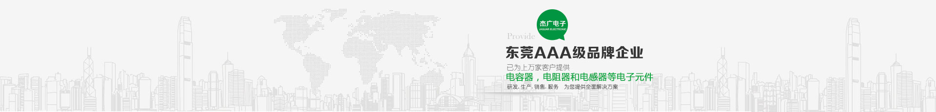 東莞市杰廣電子有限公司是一電子元件之專業(yè)制造廠 ,銷售遍及世界各地,主要產(chǎn)品包括:電容器,電阻器和電感器等電子元件,以供應汽車,通訊,電腦,音響,影像,電動工具,儀表,以及軍用電子等工業(yè)之電子元件使用。